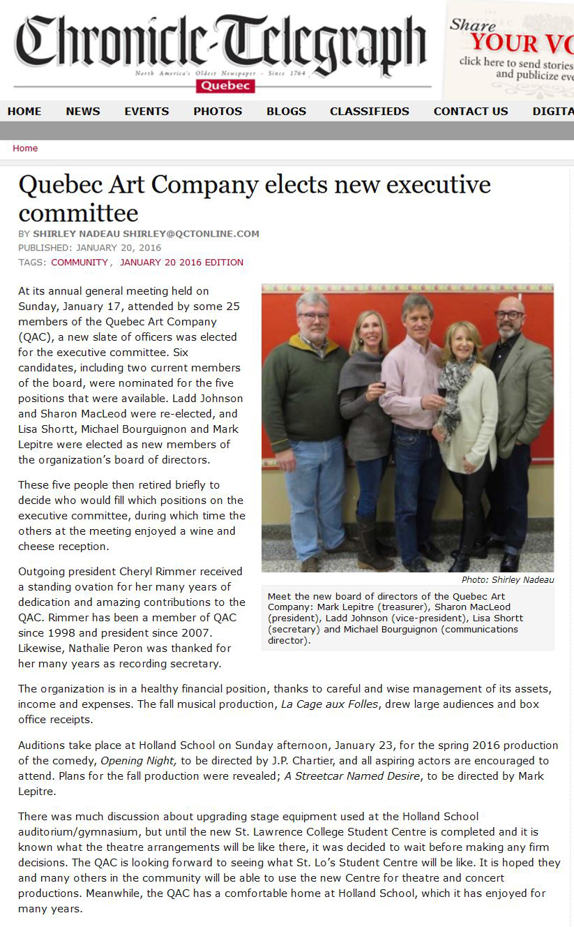Shirley Nadeau, Quebec Chronicle-Telegraph