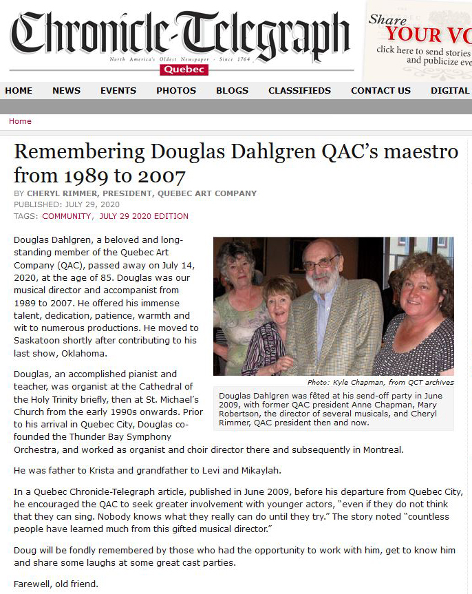 Karen Macdonald, Quebec Chronicle-Telegraph